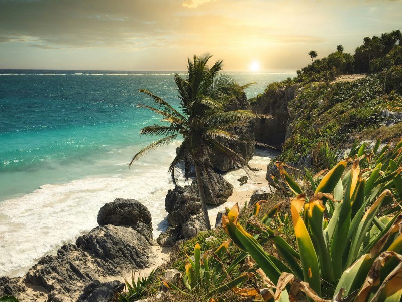 Tulum ist eine wunderschöne Küstenstadt auf der Halbinsel Yucatán in Mexiko. Sie ist bekannt für ihre gut erhaltenen Maya-Ruinen, die direkt an der Küste liegen und eine atemberaubende Aussicht auf das Karibische Meer bieten. Die Tulum-Ruinen gehören zu den meistbesuchten archäologischen Stätten in Mexiko. Neben den historischen Stätten bietet Tulum auch traumhafte Strände mit weißem Sand und kristallklarem Wasser, ideal zum Schwimmen und Schnorcheln. Die Stadt selbst hat ein entspanntes, bohemisches Flair mit zahlreichen Restaurants, Cafés und Geschäften. Tulum ist ein perfektes Reiseziel für Geschichtsinteressierte, Naturliebhaber und Strandurlauber.